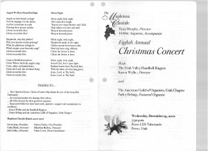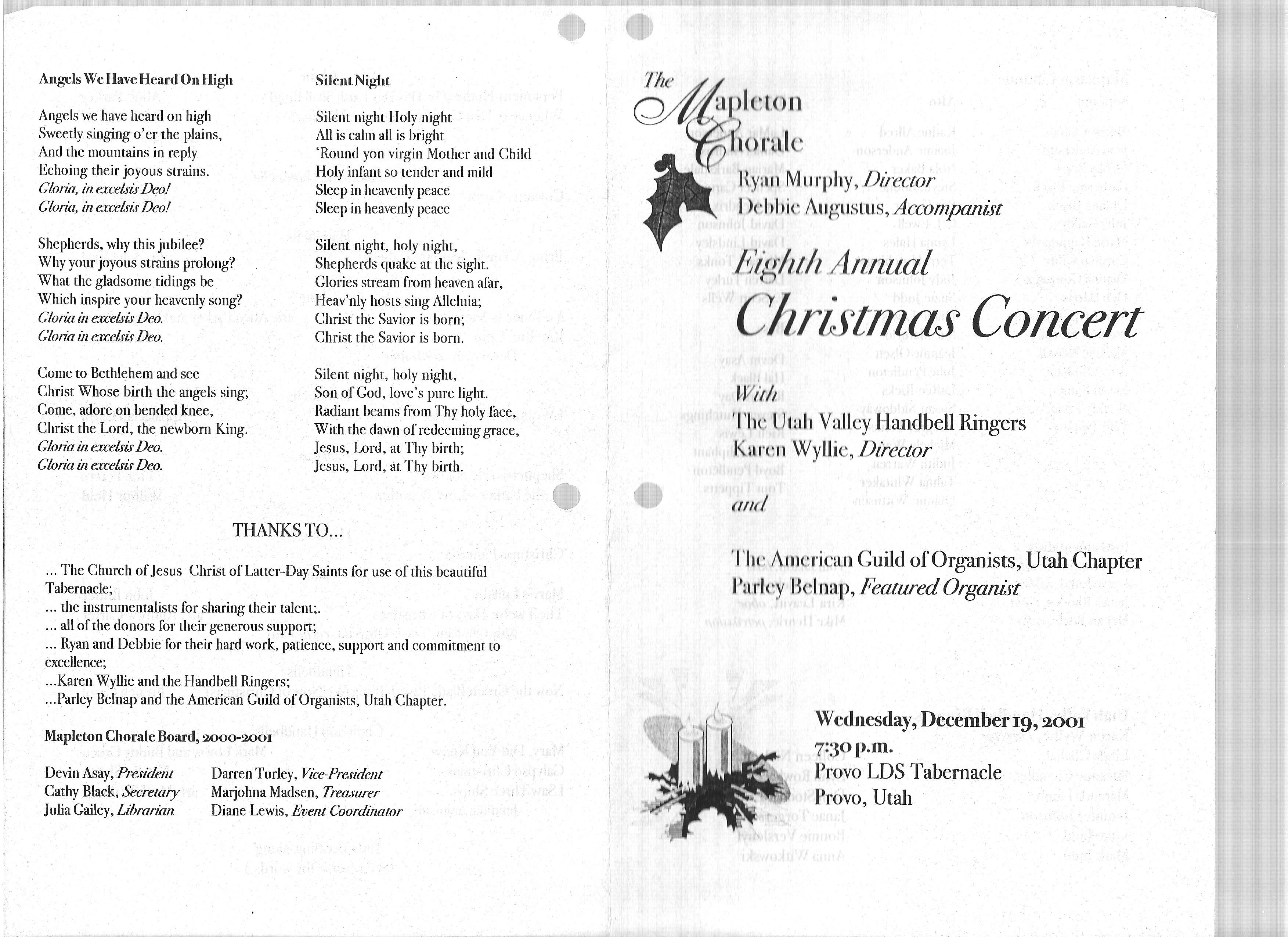 1. December 19, 2001 – Mapleton Chorale’s Christmas Concert, Provo Tabernacle